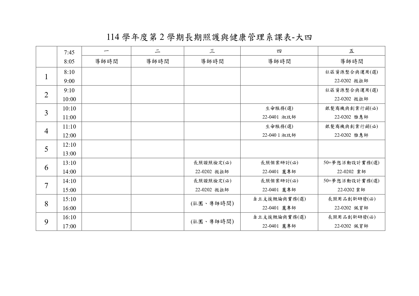 班級課表